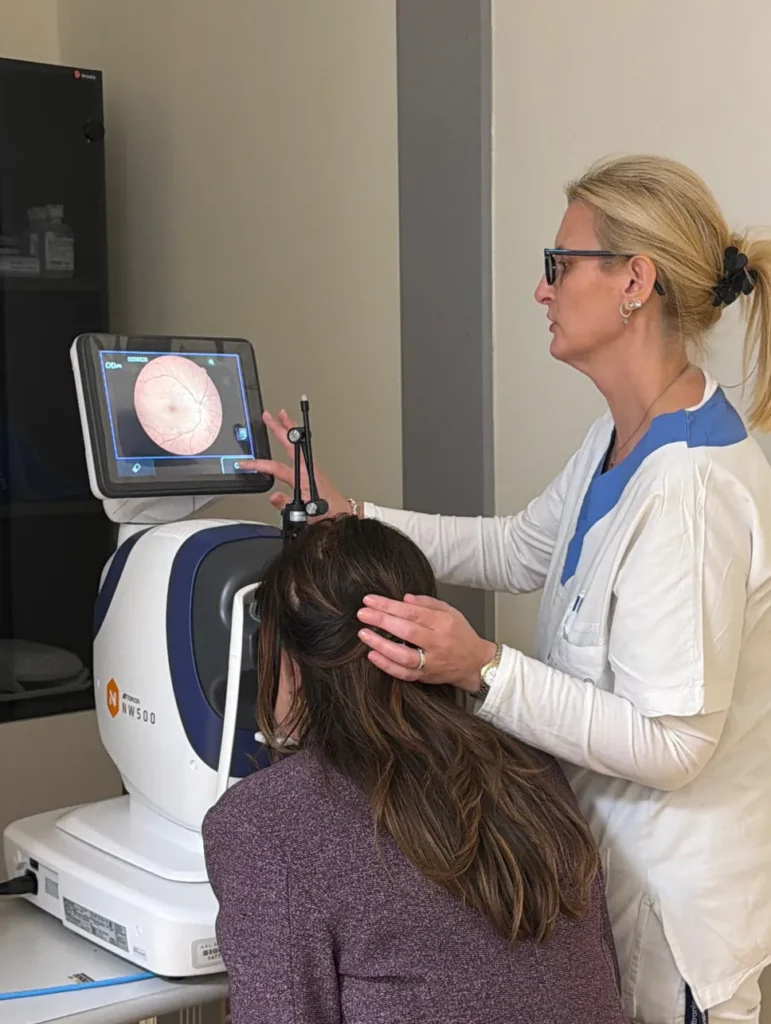 Il retinografo consente di ottenere una fotografia a colori del fondo oculare, utile per diagnosticare e monitorare nel tempo le patologie dell’occhio, tra cui la retinopatia diabetica, una complicanza silenziosa del diabete, senza sintomi evidenti nelle fasi iniziali, che progredisce verso la cecità.